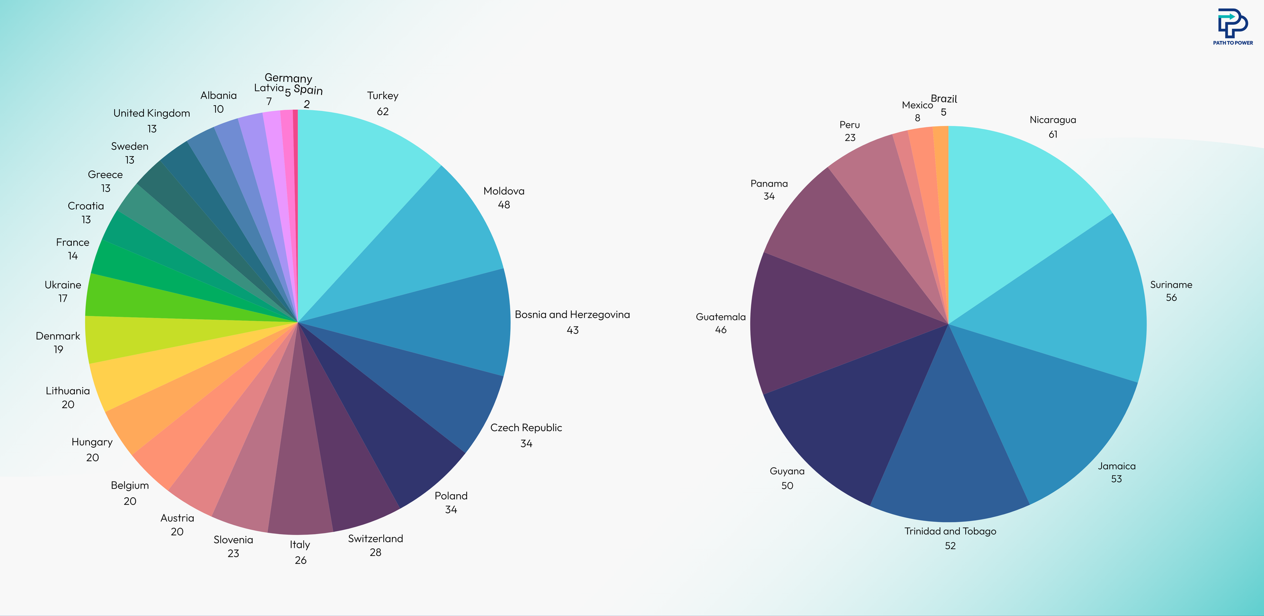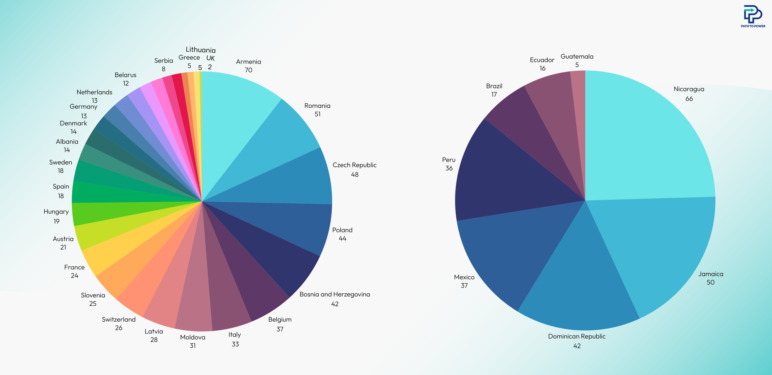 In Latin America, with the exception of Peru, high levels of vote share were located in Caribbean countries or small countries like Guatemala and Panama.